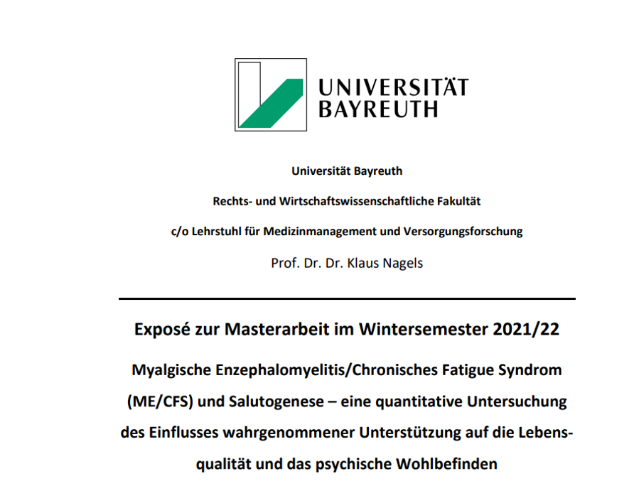 Kommentar schreiben (0 Kommentare)Masterarbeit "Unterstützung auf die Lebensqualität und das psychische Wohlbefinden von ME/CFS Betroffenen
