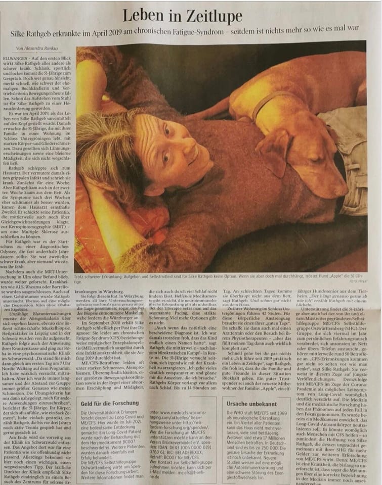 Kommentar schreiben (0 Kommentare)Leben in Zeitlupe: Wie das chronische Fatigue-Syndrom das Leben von Silke Rathgeb verändert hat (Schwäbische)