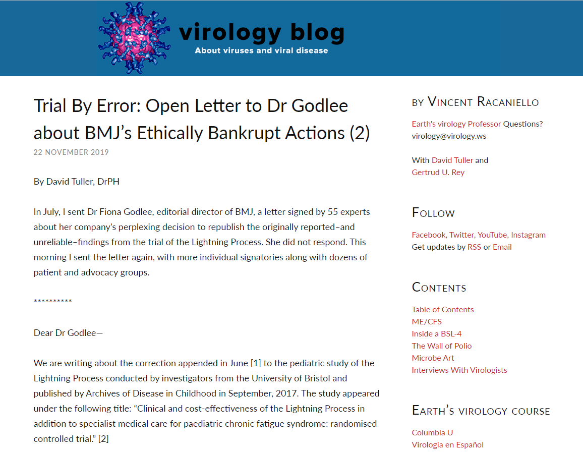 von David Tuller, DrPH - veröffentlicht am 22. NOVEMBER 2019