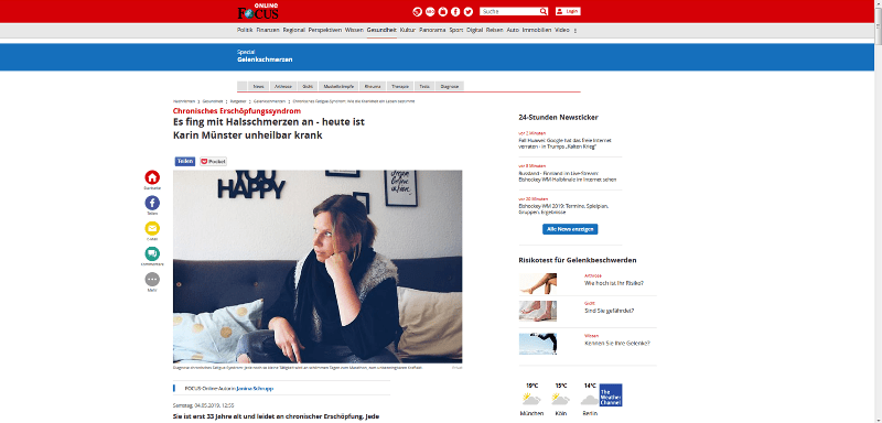 Focus online: Chronisches Erschöpfungssyndrom - Es fing mit Halsschmerzen an