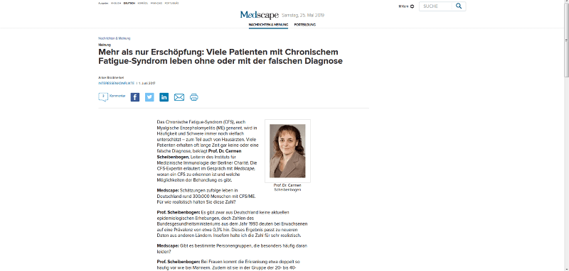 Prof. Scheibenbogen: Das größte Problem besteht darin, dass die Patienten in aller Regel als deutlich weniger krank anerkannt werden, als sie tatsächlich sind. Häufig müssen sich die Patienten Sätze anhören wie: „Ja, das kenne ich. Ich fühle mich auch oft so müde und ausgelaugt!“ Vielfach sehen die Patienten auch gar nicht so krank aus – was dazu führt, dass selbst Ärzte und Gutachter die Schwere ihrer Erkrankung unterschätzen und die Patienten dann z.B. Schwierigkeiten haben, ihre Erwerbsunfähigkeitsrente zu bekommen.