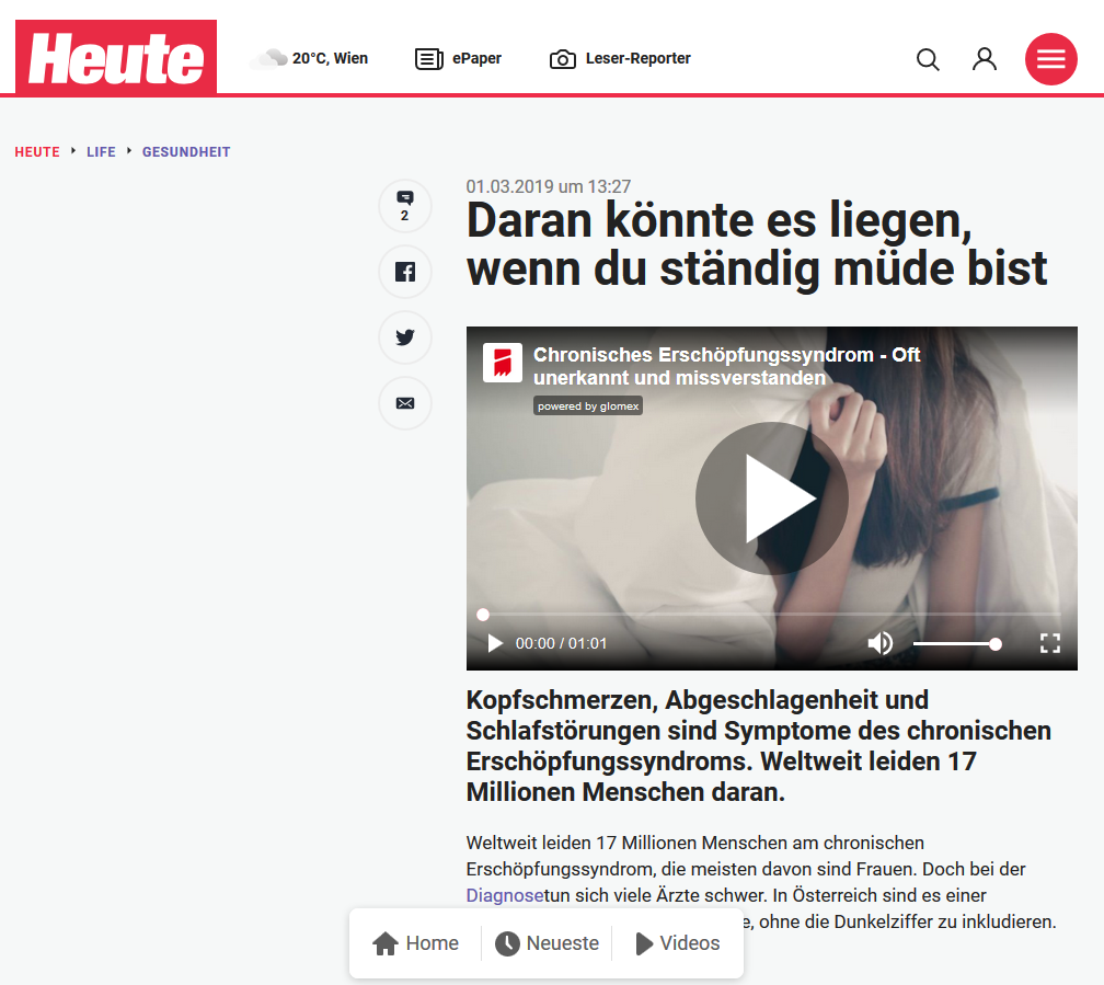 Kommentar schreiben (1 Kommentar)Chronic Fatigue-Syndrom (CFS / ME): Was ist das?