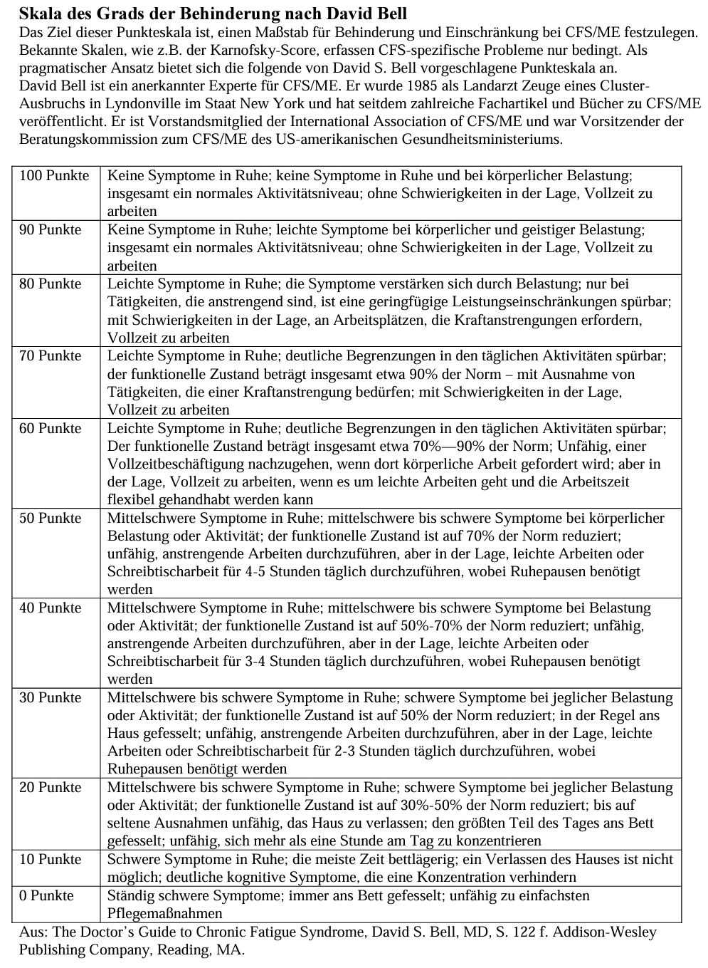 David Sheffield Bell, ein US-amerikanischer Allgemeinmediziner, entwickelte 1984 die nach ihm benannte Bell-Skala, mit der eine Klassifizierung des Schweregrads der Erkrankung möglich ist.